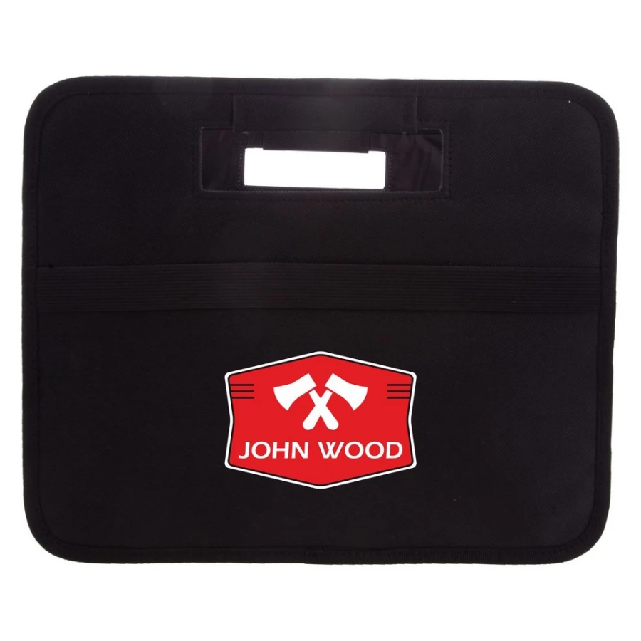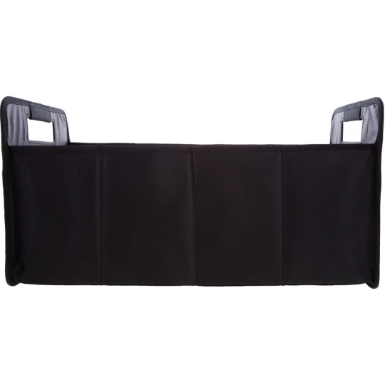 Składany organizer samochodowy, 2 przegrody z dodatkowym usztywnieniem dna, wewnątrz 2 boczne kieszenie siateczkowe