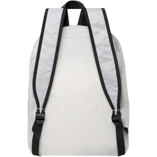 Ten zaprojektowany z myślą o wygodzie i praktyczności lekki, a zarazem wytrzymały plecak dopasowuje się do Twoich potrzeb. Możesz złożyć go i umieścić w kompaktowym woreczku, który posiada specjalną pętlę do zawieszenia, umożliwiającą łatwe powieszenie i przenoszenie. To sprawia, że plecak idealnie nadaje się dla podróżników, piechurów i do codziennego użytku. Posiada główną komorę zapinaną na zamek, przednią kieszeń zapinaną na zamek, dwie kieszenie boczne i regulowane szelki. Wykonany z poliestru pochodzącego z recyklingu, wolnego od PVC. Pojemność: 15 litrów.