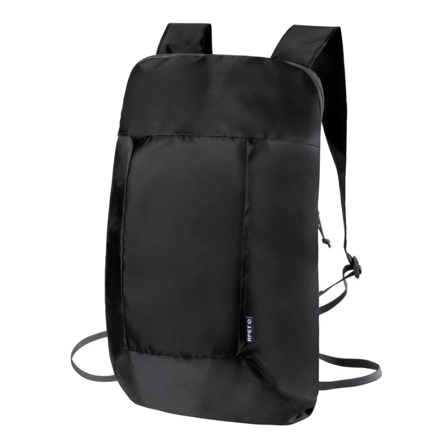 Składany plecak, regulowane paski na ramię umożliwiające dopasowanie ich długości do własnych preferencji, produkt wykonany z poliestru 210D RPET