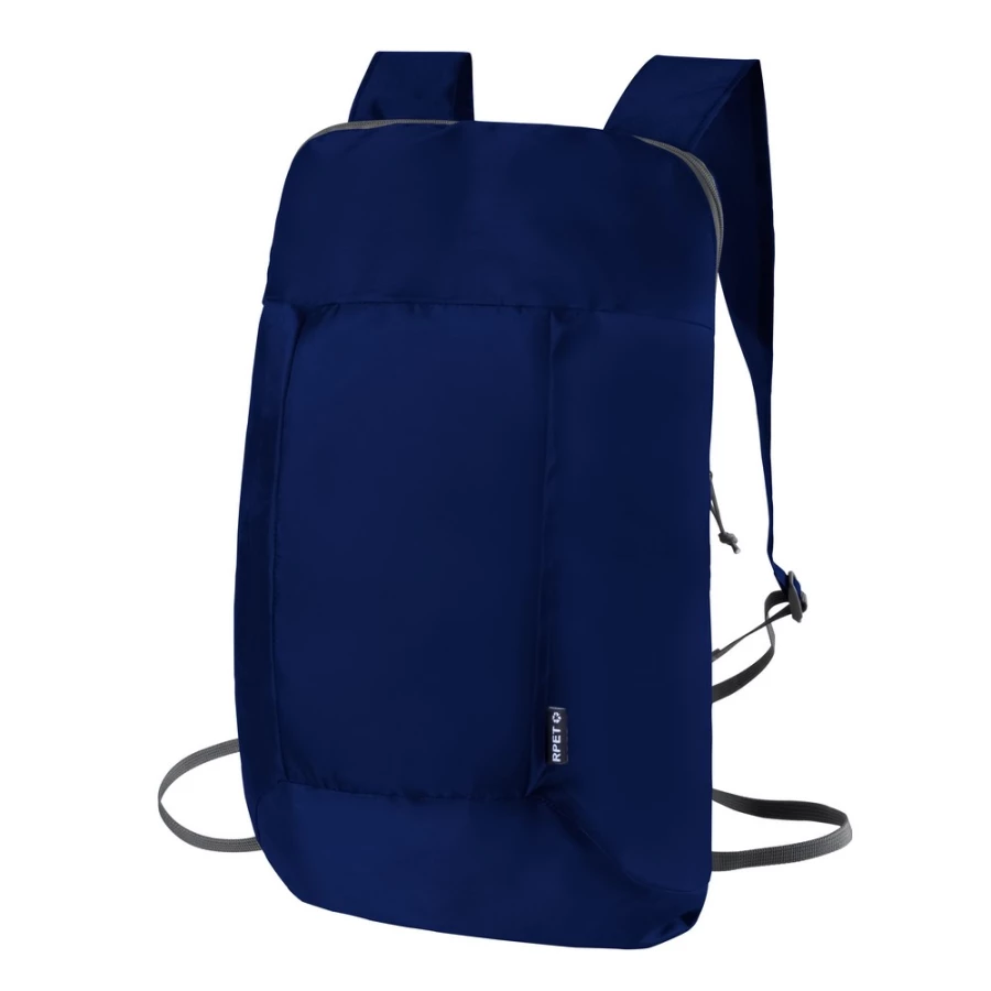 Składany plecak, regulowane paski na ramię umożliwiające dopasowanie ich długości do własnych preferencji, produkt wykonany z poliestru 210D RPET