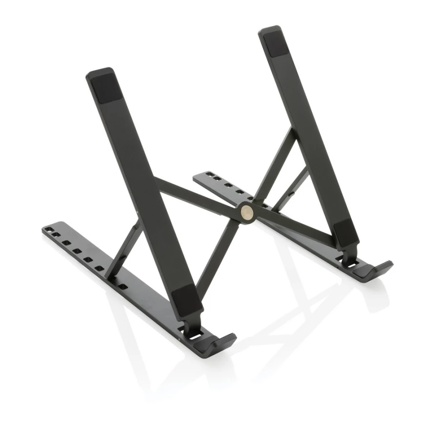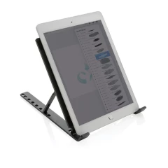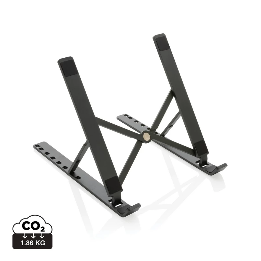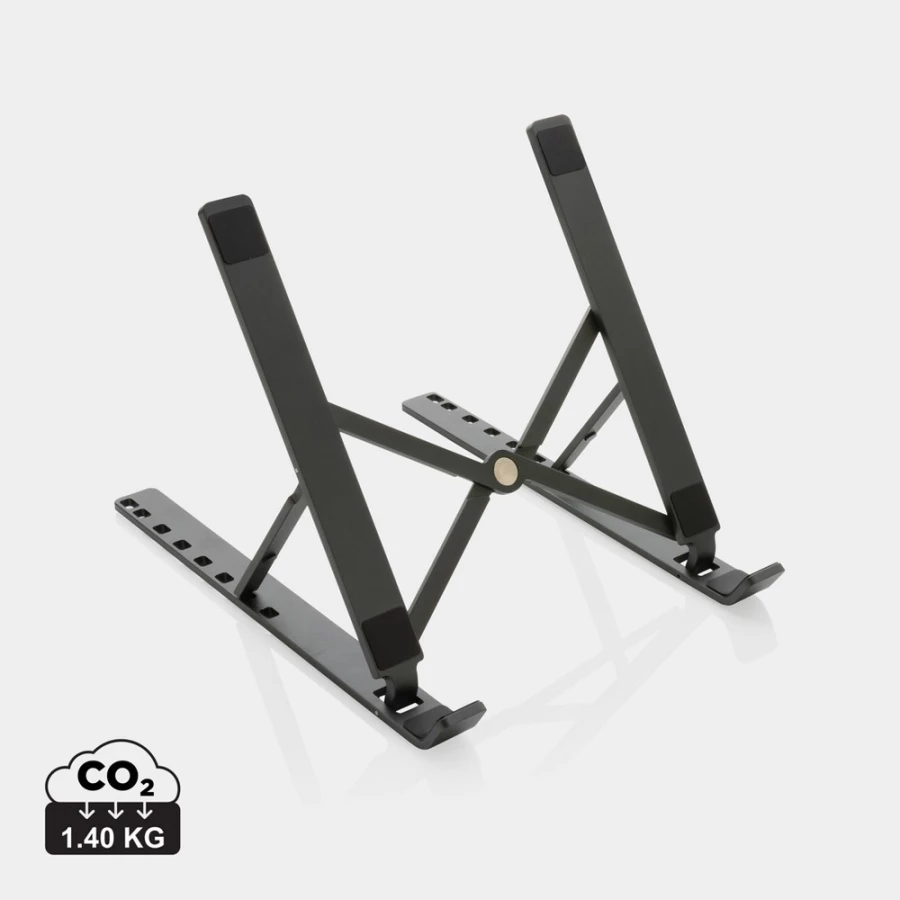 Podstawka pod laptopa, pasuje do laptopów o przekątnej do 15,6”, składana, 8 kątów ustawienia, wykonany z aluminium i TPE pochodzących z recyklingu z certyfikatami RCS, całkowita zawartość materiałów z recyklingu obliczona na podstawie wagi całkowitej przedmiotu: 99%, w ozdobnym pudełku z certyfikatem FSC® mix, ślad węglowy produktu: 1,4 kg CO2