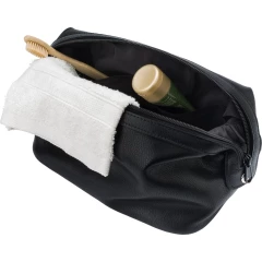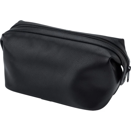 Kosmetyczka, wykonana ze skóry, główna przegroda na zamek błyskawiczny, kieszenie wewnętrzne, 2 guziki po bokach do stabilizowania kosmetyczki