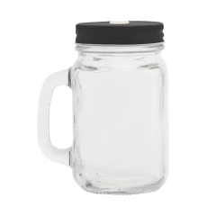 Słoik do picia 500 ml z uchwytem, słomką i metalowym wieczkiem