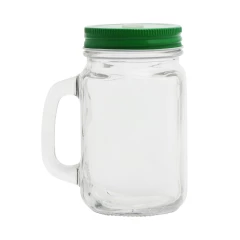 Słoik do picia 500 ml z uchwytem, słomką i metalowym wieczkiem
