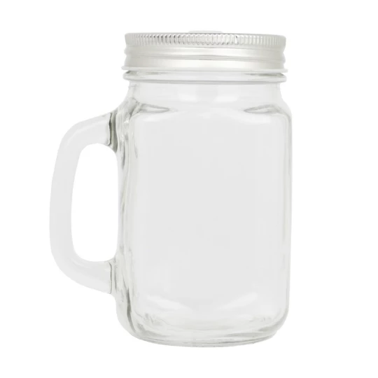 Słoik do picia 500 ml z uchwytem, słomką i metalowym wieczkiem