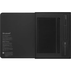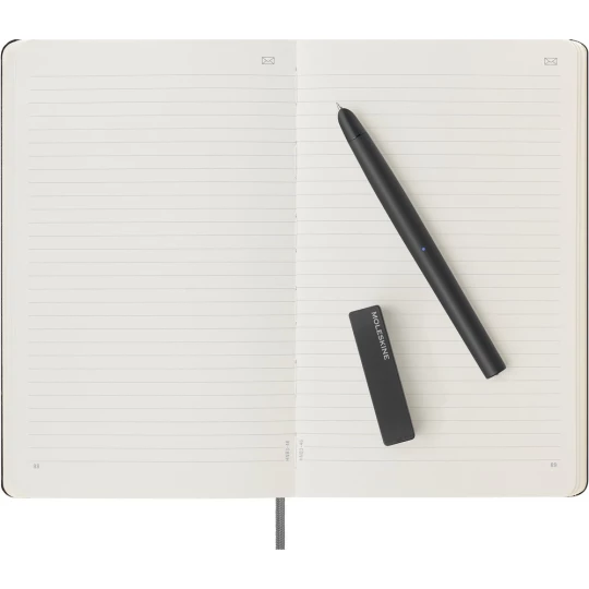Zestaw MOLESKINE Smart Writing Set 3 przenosi odręcznie zrobione notatki lub szkice na urządzenia mobilne za pomocą darmowej aplikacji, w skład zestawu wchodzi: długopis cyfrowy Smart Pen, specjalny notatnik w linie MOLESKINE Smart Notebook (ok. A5, large, 176 stron), kabel do ładowania oraz dodatkowy wkład