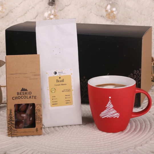 Efektowny, wyróżniający się wyjątkową matową powierzchnią kubek Fiord Matt w połączeniu z pełną aromatu kraftową kawą mieloną Arabica Brazil Cerrado Mineiro 100g oraz migdałami zatopionymi w mlecznej czekoladzie 50g. PREZENTOWANE ZDOBIENIE MA CHARAKTER POGLĄDOWY I NIE JEST WLICZONE W CENĘ PRODUKTU. ZESTAW DOSTĘPNY W DEDYKOWANYM OPAKOWANIU MERRY Z WYBRANĄ OPCJĄ ZDOBIENIA.