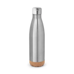 Dwuścienna, izolowana próżniowo butelka ze stali nierdzewnej z korkową podstawą. Pojemność do 560 mL. Dostarczany w pudełku upominkowym z papieru kraft. Ponieważ produkt składa się z naturalnych materiałów, jego kolor może się różnić w zależności od egzemplarza. ø71 x 258 mm | Pudełko: 76 x 76 x 272 mm
