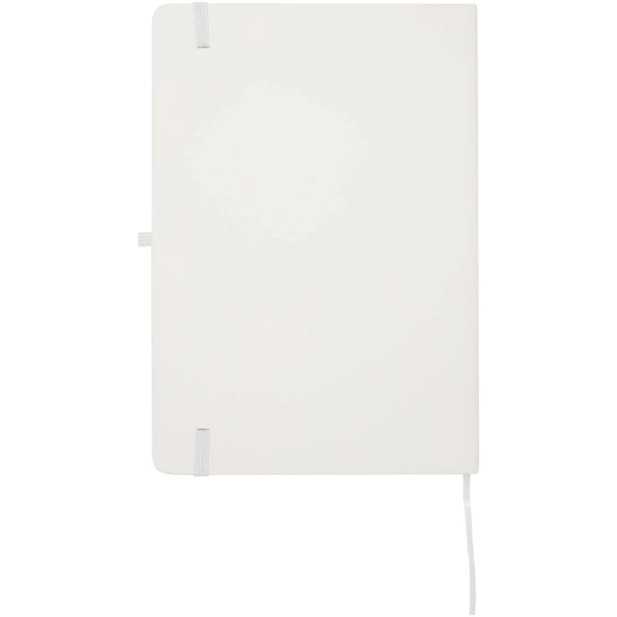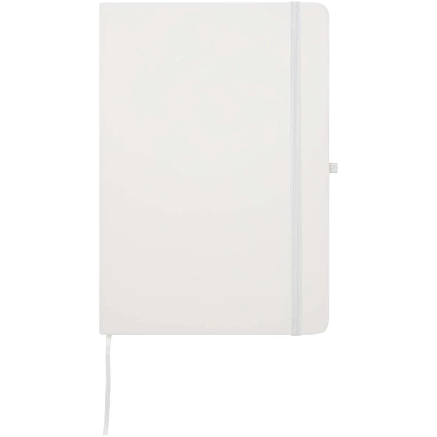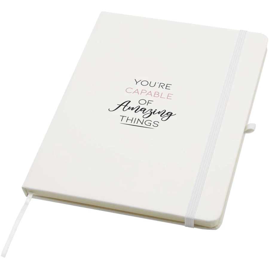 Notatnik Spectrum Plus w formacie A5 z twardą okładką i zaokrąglonymi rogami to nie tylko niezbędny element wyposażenia biura, ale także świetna okazja do promocji marki. Tekturowy notatnik ma miękką okładkę i 80 liniowanych, kremowych kartek o gramaturze 70 g/m². Jest idealny do zapisywania szybkich pomysłów lub dłuższych notatek. Notatnik jest wyposażony w szlufkę na długopis, elastyczne zamknięcie, wstążkową zakładkę i harmonijkową kieszonkę.