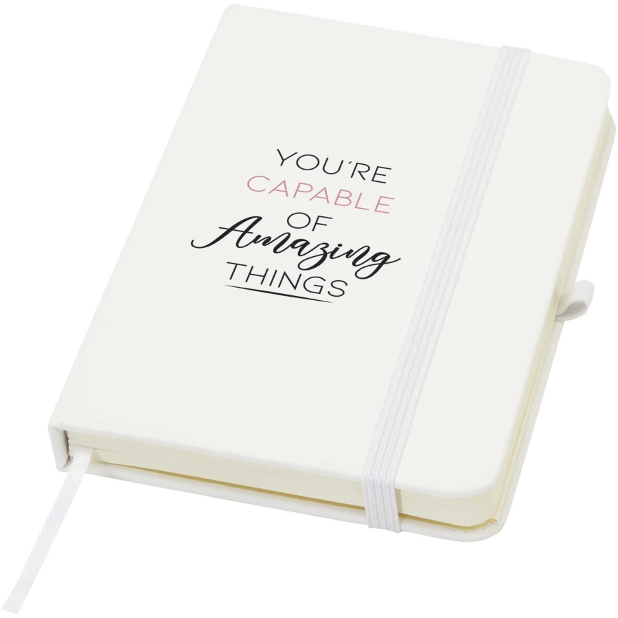 Notatnik Spectrum Plus w formacie A6 z twardą okładką i zaokrąglonymi rogami to nie tylko niezbędny element wyposażenia biura, ale także świetna okazja do promocji marki. Tekturowy notatnik ma miękką okładkę i 80 liniowanych, kremowych kartek o gramaturze 70 g/m². Jest idealny do zapisywania szybkich pomysłów lub dłuższych notatek. Notatnik jest wyposażony w szlufkę na długopis, elastyczne zamknięcie, wstążkową zakładkę i harmonijkową kieszonkę.