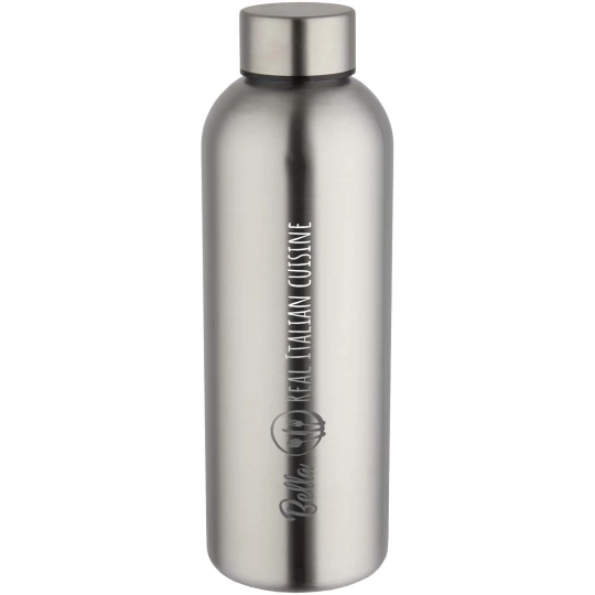 Jednościenna butelka na wodę Spring wykonana ze stali nierdzewnej z recyklingu z certyfikatem RCS posiada zakręcaną pokrywkę i matowe wykończenie natryskowe. Lekka, a jednocześnie trwała butelka, idealna do codziennego nawadniania organizmu. Pojemność: 750 ml.