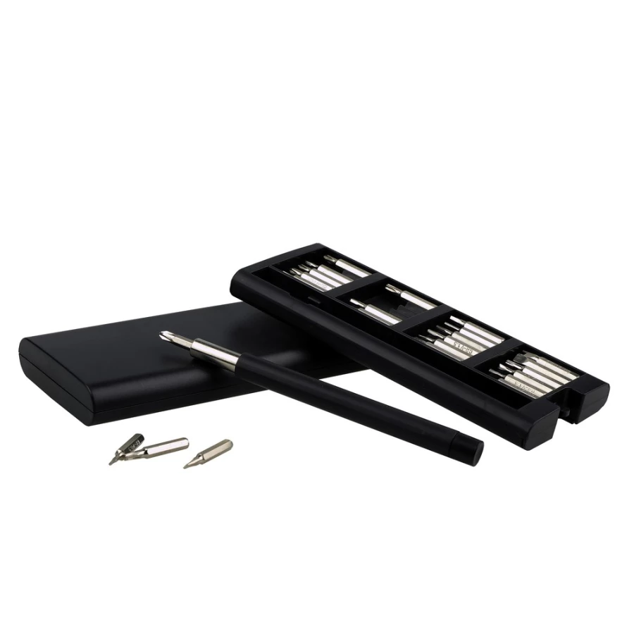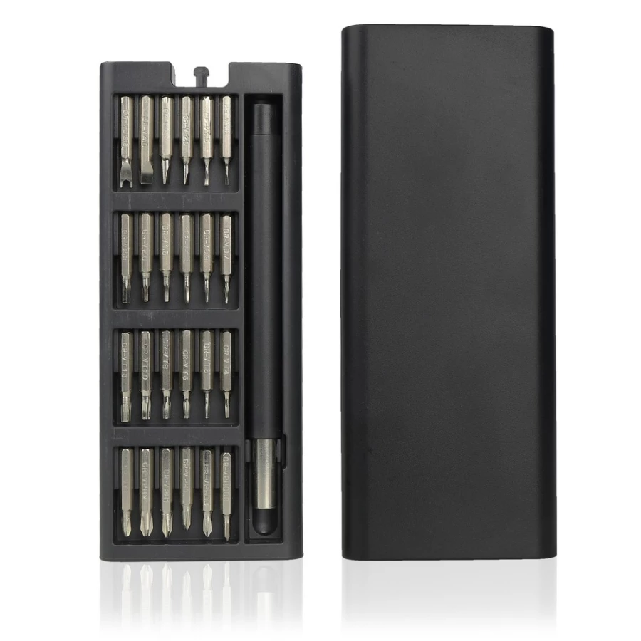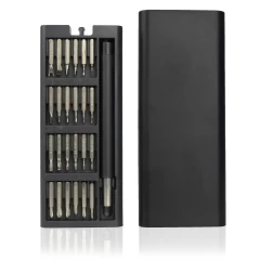 Śrubokręt, zestaw 24 końcówek w magnetycznym pudełku z otwarciem typu push open/close, z magnesem w rączce do przytrzymania końcówek