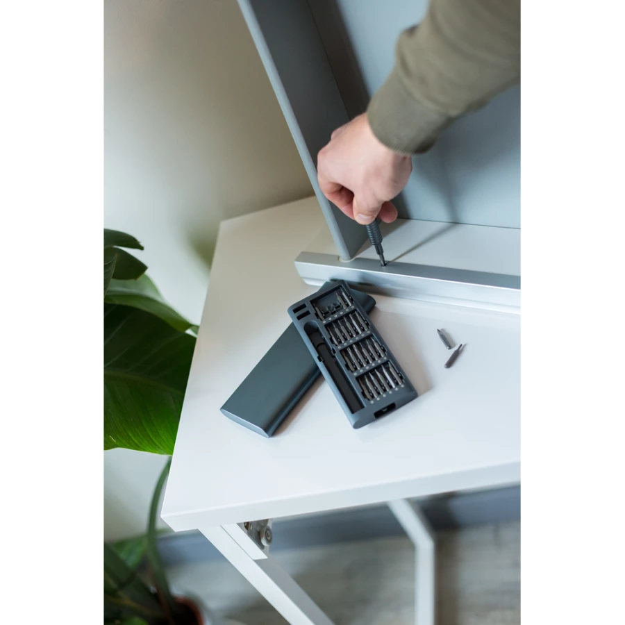 Śrubokręt, zestaw 48 końcówek w pudełku z otwarciem typu push open/close, pudełko z 2 komorami: do magnesowania bitów oraz do rozmagnesowywania bitów, magnes w rączce do przytrzymania końcówek