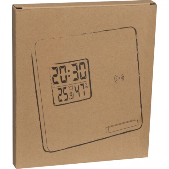 Stacja pogodowa wykonana z drewna bambusowego, z cyfrowym wyświetlaczem ukazującym: czas, temperaturę oraz wilgotność powietrza. W stację wbudowana została także bezprzewodowa ładowarka, dzięki której wygodnie naładujesz swój telefon, umieszczając go na podstawce.