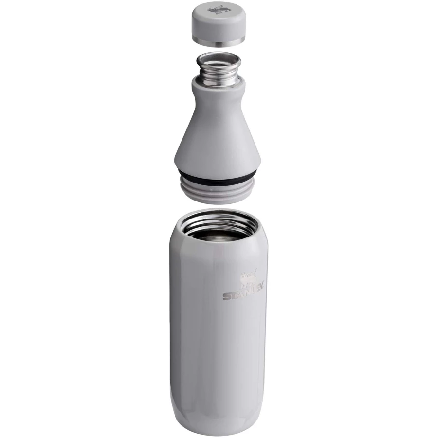 Butelka na wodę Stanley All Day Slim o pojemności 350 ml została zaprojektowana z myślą o nawadnianiu organizmu przez cały dzień, łącząc wygodę i doskonałe parametry użytkowe. Jest wykonana w 90% ze stali nierdzewnej z recyklingu i posiada dwuczęściowy otwór. Jego jedna część służy do łatwego popijania, a druga do dodawania lodu i łatwego czyszczenia. Szyjka butelki wykonana jest z jednościennej stali nierdzewnej. Zakończona jest gwintowanym kołnierzem z tworzywa i bezpieczną uszczelką zapobiegającą wyciekom. Korpus butelki posiada podwójną izolację próżniową, dzięki czemu napoje zachowują idealną temperaturę przez wiele godzin. Ta wytrzymała i starannie zaprojektowana butelka pozwoli Ci zadbać o orzeźwienie, gdziekolwiek się znajdziesz w ciągu dnia.