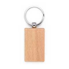 Prostokątny brelok z drewna bukowego z żelaznym pierścieniem. Ponieważ produkt jest wykonany z naturalnych materiałów, kolor produktu oraz wynik drukowania mogą się różnić w zależności od produktu. Pierścień: ø 32 mm | Produkt: 50 x 30 x 9 mm | Złącze: ø 10 mm | Razem: 85 x 32 x 9 mm