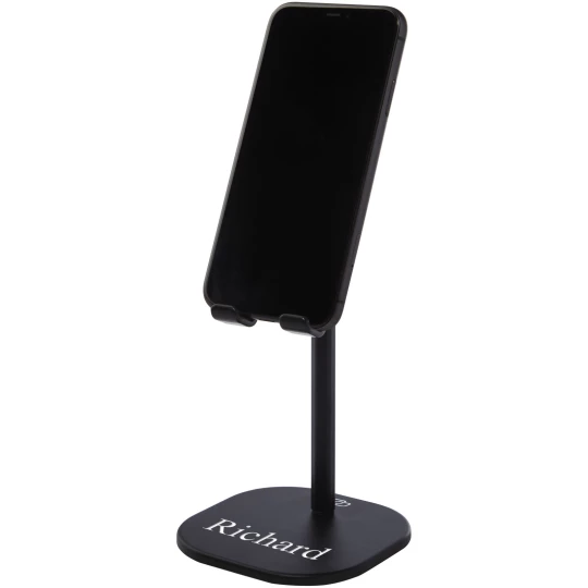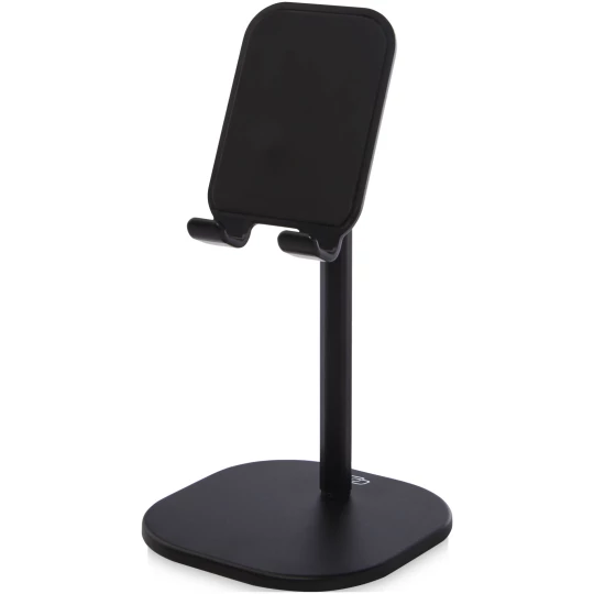 Stojak na telefon/tablet wykonany z aluminium i plastiku ABS. Zarówno wysokość, jak i kąt widzenia można regulować, dzięki czemu jest to idealne akcesorium do prowadzenia rozmów konferencyjnych, transmisji na żywo lub po prostu do oglądania filmów. Spód ma antypoślizgowy materiał, który zapobiega przesuwaniu się. Dostarczane w wysokiej jakości pudełku z papieru Kraft z kolorową naklejką.