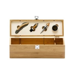 Zestaw do wina wykonany z bambusa, ABS i stali nierdzewnej. W zestawie: korkociąg z nożem, kołnierz, nalewak i zatyczka. Ponieważ produkt jest wykonany z naturalnych materiałów, kolor produktu oraz wynik drukowania mogą się różnić w zależności od produktu. 363 x 112 x 119 mm