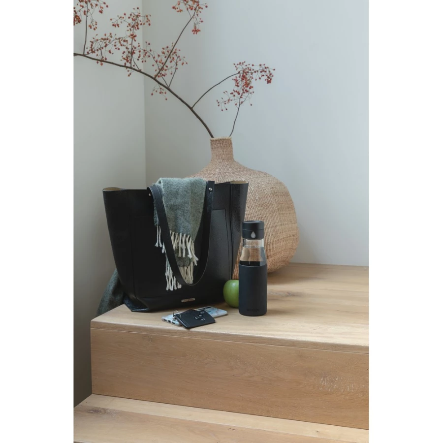 Szklana butelka 650 ml, wykonana ze szkła borokrzemowego, po napełnieniu butelki i przekręceniu pierścienia na zakrętce pojawia się duża kropla, dzięki której łatwo można policzyć ilość wypitych butelek wody, szczelna, wyłącznie mycie ręczne, korpus można myć w zmywarce, wzór zastrzeżony®, ślad węglowy produktu: 1,45 kg CO2