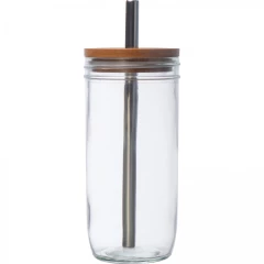 Szklanka zamykana przy pomocy bambusowej pokrywki, ze słomką ze stali nierdzewnej. Pojemność 650 ml. Idealna do serwowania lemoniady lub bubble tea.