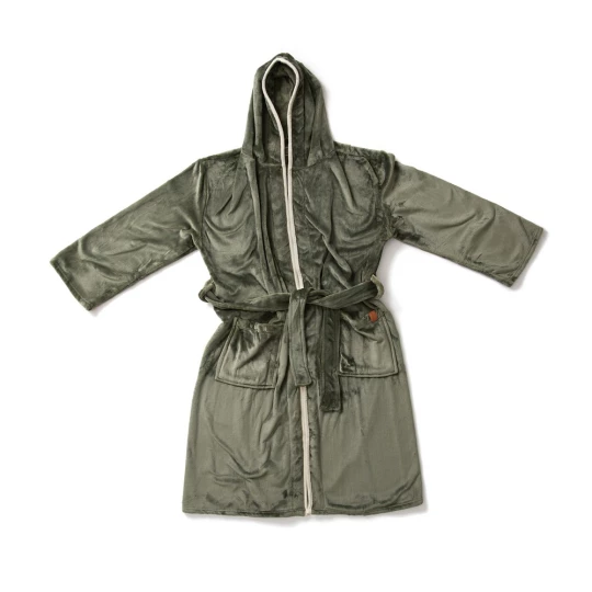 Szlafrok, wykonany w 70% z RPET, 2 kieszenie z przodu, możliwość zawiązania w pasie, szeroki kołnierzyk, spełnia wymagania standardu OEKO-TEX 100