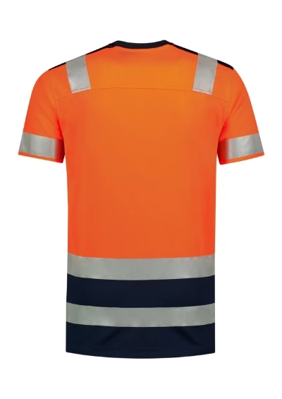 odzież o wysokiej widoczności, odblaskowe paski, krótkie rękawy, okrągły dekolt, Ochorna UV UPF 40+, dwukolorowy wzór, certyfikacja zgodnie z normą EN ISO 20 471 :2013(klasa 1), Tricorp kod produktu: 103006