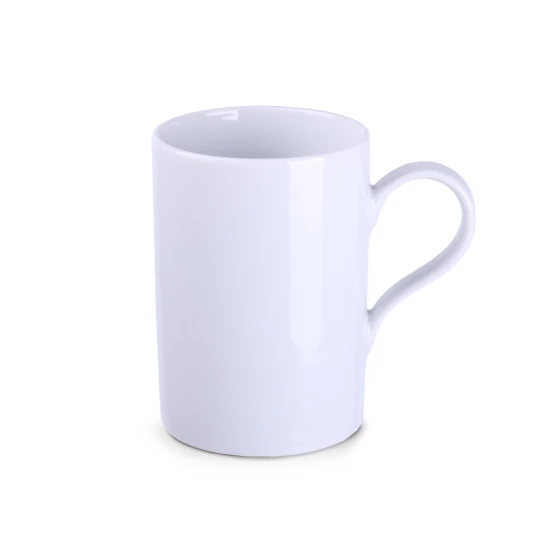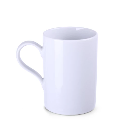 Ciekawy porcelanowy kubek o prostym walcowatym kształcie. Posiada modne, ergonomiczne ucho. Produkowany w Europie.