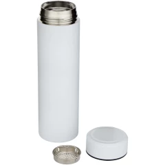 Wykonany z dwuściennej, izolowanej próżniowo stali nierdzewnej, ten termos dłużej utrzymuje napoje w pożądanej temperaturze i zawiera wyjmowane sitko do herbaty dla dodatkowej wygody. Dzięki pojemności 450 ml i szczelnej konstrukcji idealnie nadaje się do codziennego użytku lub podróży.