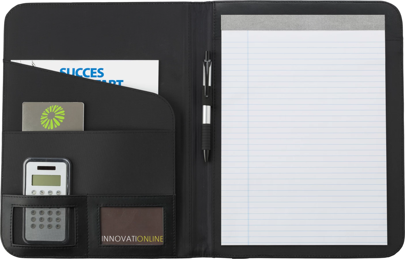 Teczka konferencyjna ok. A4 z notatnikiem (25 kartek w linie), kieszenie wewnętrzne, miejsce na przybory do pisania (nie dołączone)