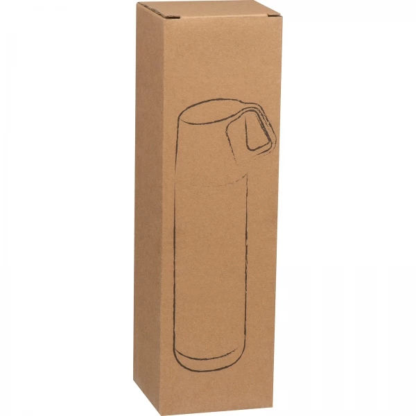 Termos ze stali nierdzewnej z izolacją próżniową. Zawiera plastikowy kubek. Pojemność 500 ml.