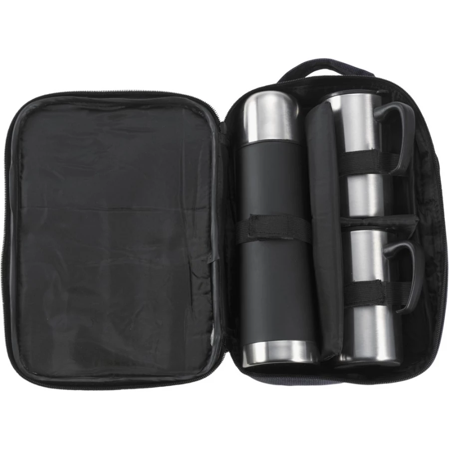 Zestaw podróżny, termos 500 ml z podwójnymi ściankami i 2 kubki 260 ml, w pokrowcu z paskiem na ramię, utrzymuje temperaturę napojów gorących do 20 godzin +leakproof