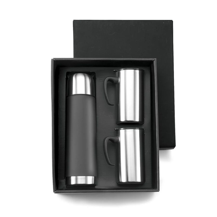 Zestaw podróżny, termos z podwójnymi ściankami 500 ml i 2 kubki 300 ml, w pudełku, utrzymuje temperaturę napojów gorących do 20 godzin +leakproof