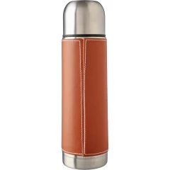 Termos 500 ml, posiada podwójne ścianki ze stali nierdzewnej z próżnią między ściankami, co spowalnia oddawanie temperatury na zewnątrz, nakrętka może być używana jako kubek, zapakowany w brązowy kartonik, produkt wykonany ze stali nierdzewnej i PU, utrzymuje temperaturę napojów gorących do 20 godzin +leakproof