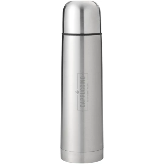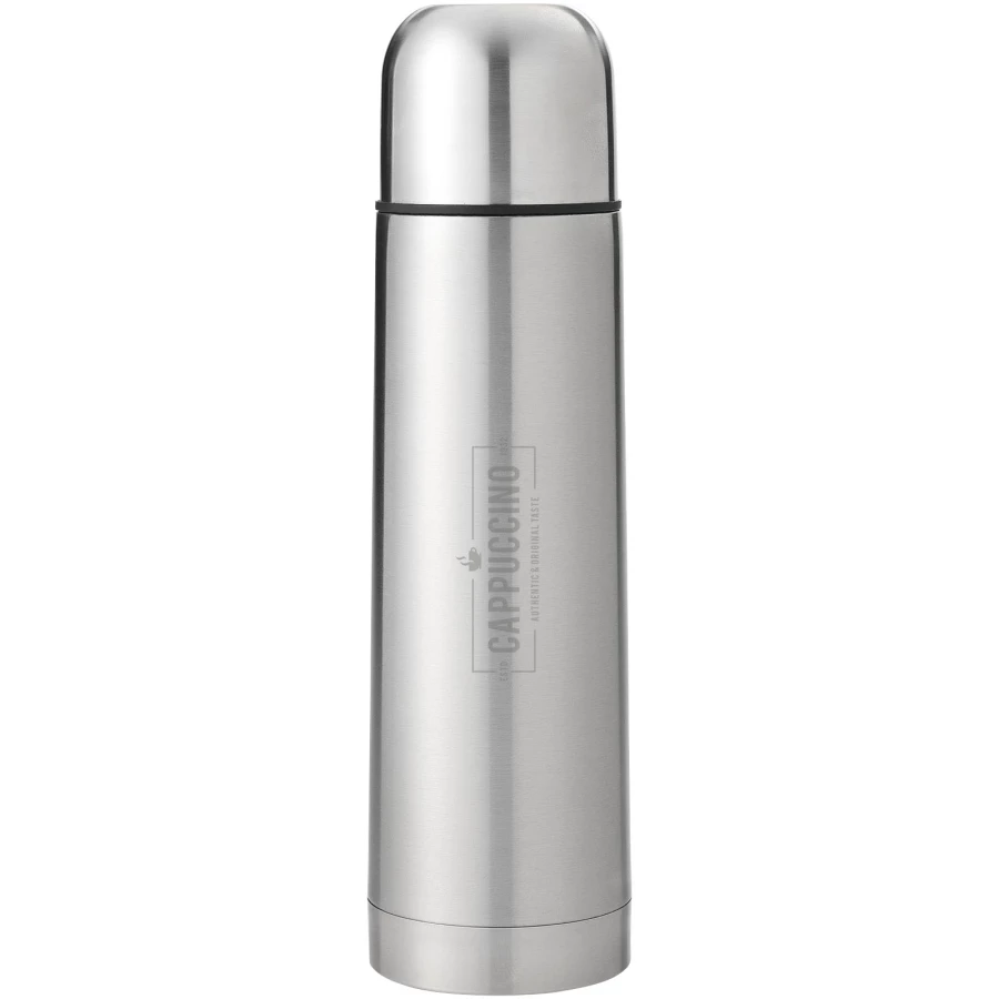 Podwójne ścianki ze stali nierdzewnej, zintegrowany kubek w nakrętce. Możliwość nalewania jedną ręką, dzięki przyciskowi rynienki spustowej, która zamyka się automatycznie po przekręceniu nakrętki. Pojemność 750 ml.