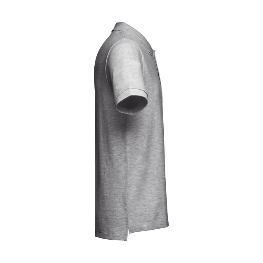 Męska koszulka polo z krótkim rękawem, ze 100% bawełny o splocie piqué (195 g/m²) (kolor 183: 85% bawełna/15% wiskoza). Kołnierzyk i mankiety z prążkowanym wykończeniem. Kołnierzyk jest wzmocniony taśmą piqué. Z przodu przy kołnierzyku znajdują się 3 pasujące kolorystycznie guziki (dodatkowy guzik na wewnętrznym szwie). Zszywana po bokach, z małymi rozcięciami w szwach bocznych u dołu. Rozmiar: 3XL
