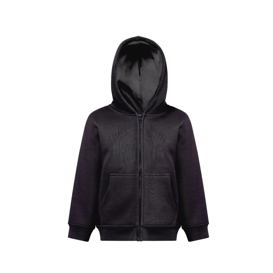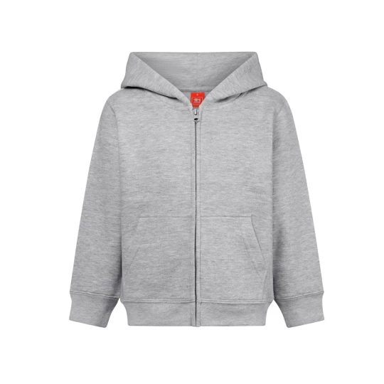 Poddana obróbce enzymatycznej kurtka dziecięca z amerykańskiej frotte (50% bawełny pochodzącej ze zrównoważonych upraw) i 50% poliestru z recyklingu (320 g/m²). Kaptur bez sznurków ściągających, podszyty dżersejem w tym samym kolorze co kurtka, zgodny z normami bezpieczeństwa Unii Europejskiej. Posiada ściągacze 1x1 w mankietach i u dołu, 2 kieszenie boczne, zamek błyskawiczny z suwakiem, ściągacz i wyściełane wnętrze. Rozmiary: 4, 6, 8, 10, 12