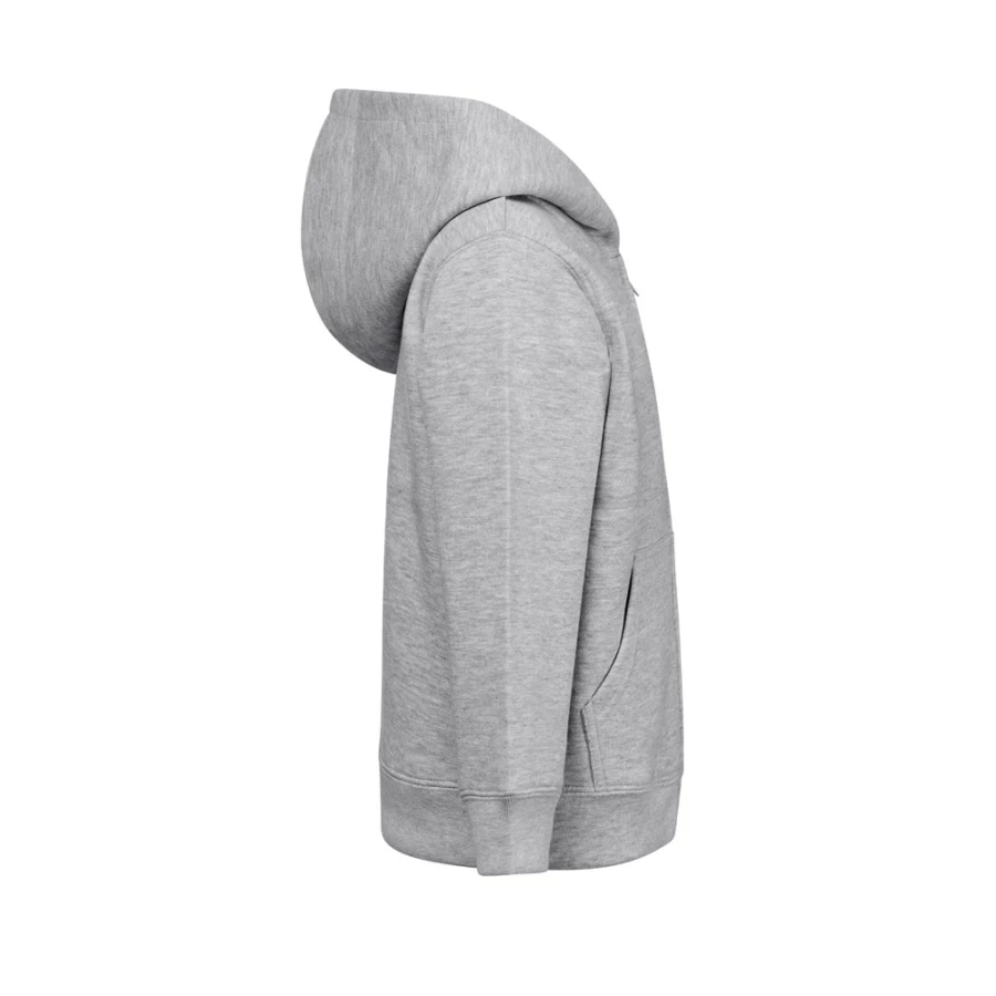Poddana obróbce enzymatycznej kurtka dziecięca z amerykańskiej frotte (50% bawełny pochodzącej ze zrównoważonych upraw) i 50% poliestru z recyklingu (320 g/m²). Kaptur bez sznurków ściągających, podszyty dżersejem w tym samym kolorze co kurtka, zgodny z normami bezpieczeństwa Unii Europejskiej. Posiada ściągacze 1x1 w mankietach i u dołu, 2 kieszenie boczne, zamek błyskawiczny z suwakiem, ściągacz i wyściełane wnętrze. Rozmiary: 4, 6, 8, 10, 12