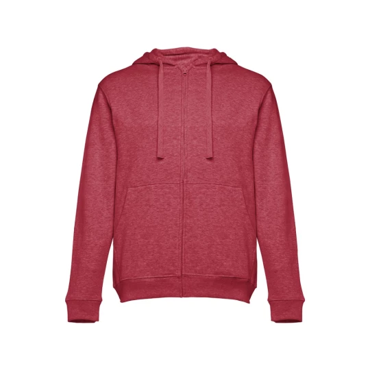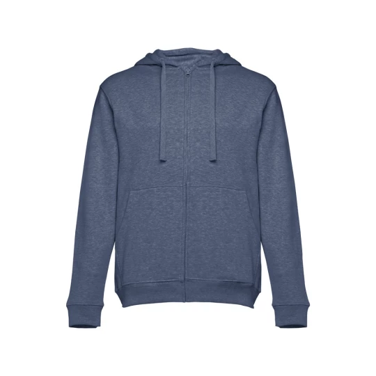 Męska bluza z kapturem zapinana na suwak. 50% bawełna i 50% poliester (320 g/m²) ze zgrzebnym wnętrzem. Kaptur jest podszyty i posiada kolorowy sznurek do ściągania. Bluza ma 2 kieszenie kangurkowe i kryty plastikowy zamek błyskawiczny. Fason ze ściągaczami przy mankietach i na dole. Rozmiary: S, M, L, XL, XXL