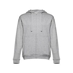 Męska bluza z kapturem zapinana na suwak. 50% bawełna i 50% poliester (320 g/m²) ze zgrzebnym wnętrzem. Kaptur jest podszyty i posiada kolorowy sznurek do ściągania. Bluza ma 2 kieszenie kangurkowe i kryty plastikowy zamek błyskawiczny. Fason ze ściągaczami przy mankietach i na dole. Rozmiary: S, M, L, XL, XXL