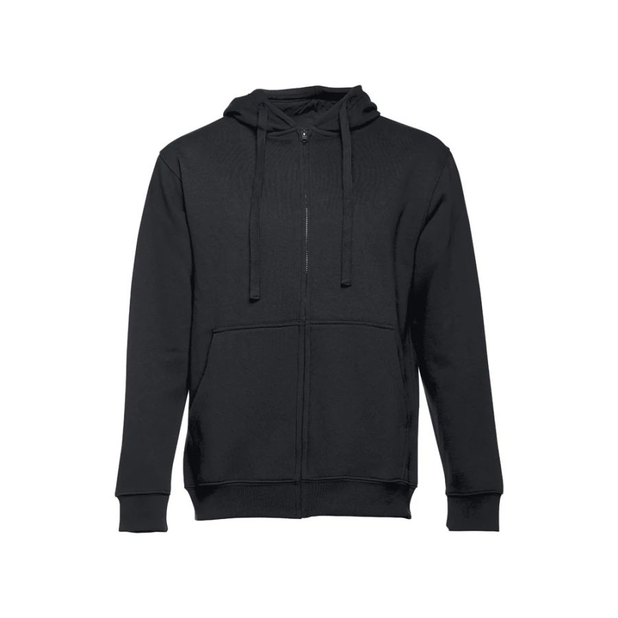 Męska bluza z kapturem zapinana na suwak. 50% bawełna i 50% poliester (320 g/m²) ze zgrzebnym wnętrzem. Kaptur jest podszyty i posiada kolorowy sznurek do ściągania. Bluza ma 2 kieszenie kangurkowe i kryty plastikowy zamek błyskawiczny. Fason ze ściągaczami przy mankietach i na dole. Rozmiary: S, M, L, XL, XXL
