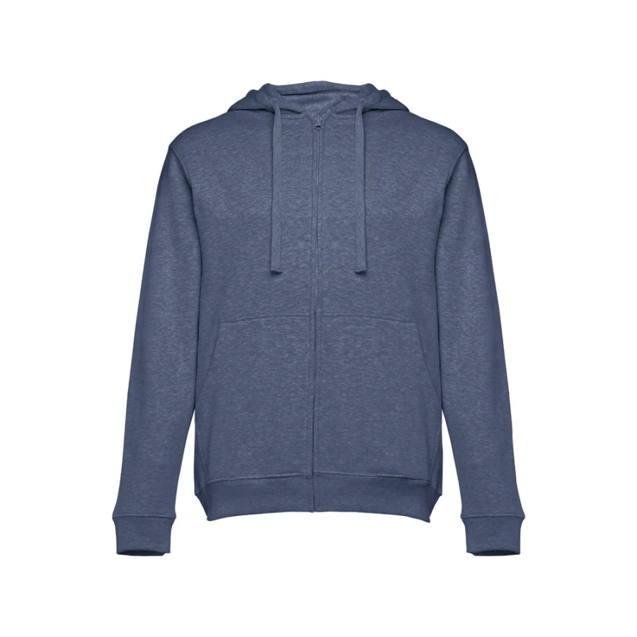 Męska bluza z kapturem zapinana na suwak. 50% bawełna i 50% poliester (320 g/m²) ze zgrzebnym wnętrzem. Kaptur jest podszyty i posiada kolorowy sznurek do ściągania. Bluza ma 2 kieszenie kangurkowe i kryty plastikowy zamek błyskawiczny. Fason ze ściągaczami przy mankietach i na dole. Rozmiary: S, M, L, XL, XXL