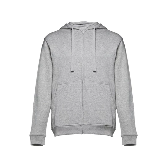 Męska bluza z kapturem zapinana na suwak. 50% bawełna i 50% poliester (320 g/m²) ze zgrzebnym wnętrzem. Kaptur jest podszyty i posiada kolorowy sznurek do ściągania. Bluza ma 2 kieszenie kangurkowe i kryty plastikowy zamek błyskawiczny. Fason ze ściągaczami przy mankietach i na dole. Rozmiary: S, M, L, XL, XXL