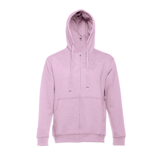 Męska bluza z kapturem zapinana na suwak. 50% bawełna i 50% poliester (320 g/m²) ze zgrzebnym wnętrzem. Kaptur jest podszyty i posiada kolorowy sznurek do ściągania. Bluza ma 2 kieszenie kangurkowe i kryty plastikowy zamek błyskawiczny. Fason ze ściągaczami przy mankietach i na dole. Rozmiary: S, M, L, XL, XXL