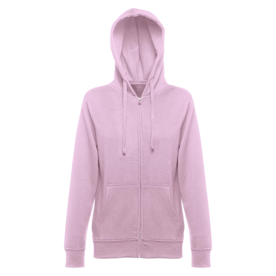 Damska bluza z kapturem zapinana na suwak. 50% bawełna i 50% poliester (320 g/m²) ze zgrzebnym wnętrzem. Kaptur jest podszyty i posiada kolorowy sznurek do ściągania. Bluza ma 2 kieszenie kangurkowe i kryty plastikowy zamek błyskawiczny. Fason ze ściągaczami przy mankietach i na dole. Rozmiary: S, M, L, XL, XXL
