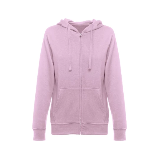 Damska bluza z kapturem zapinana na suwak. 50% bawełna i 50% poliester (320 g/m²) ze zgrzebnym wnętrzem. Kaptur jest podszyty i posiada kolorowy sznurek do ściągania. Bluza ma 2 kieszenie kangurkowe i kryty plastikowy zamek błyskawiczny. Fason ze ściągaczami przy mankietach i na dole. Rozmiary: S, M, L, XL, XXL
