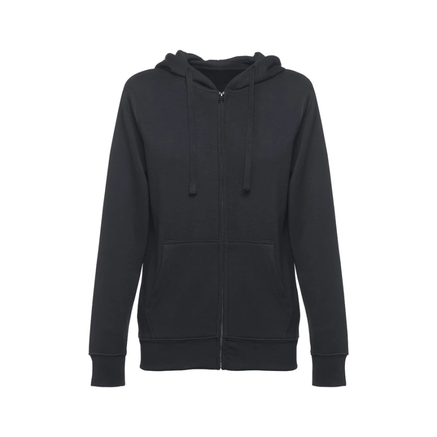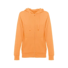 Damska bluza z kapturem zapinana na suwak. 50% bawełna i 50% poliester (320 g/m²) ze zgrzebnym wnętrzem. Kaptur jest podszyty i posiada kolorowy sznurek do ściągania. Bluza ma 2 kieszenie kangurkowe i kryty plastikowy zamek błyskawiczny. Fason ze ściągaczami przy mankietach i na dole. Rozmiary: S, M, L, XL, XXL