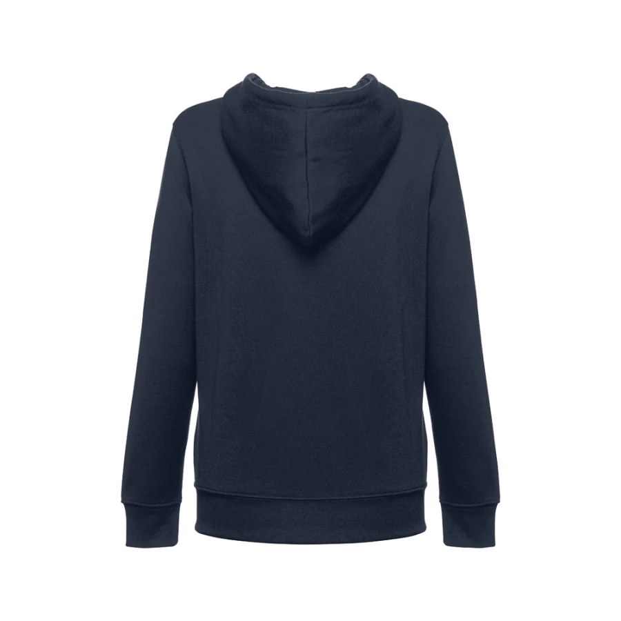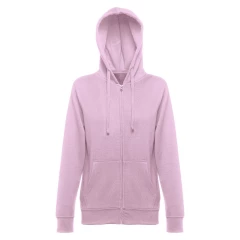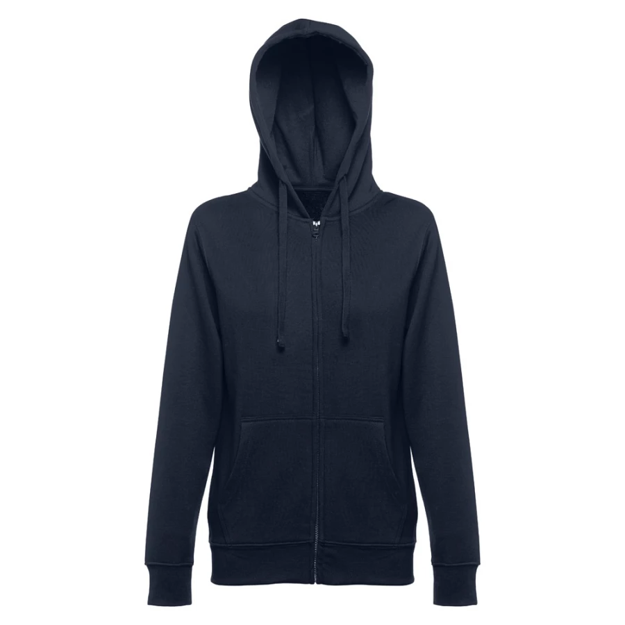 Damska bluza z kapturem zapinana na suwak. 50% bawełna i 50% poliester (320 g/m²) ze zgrzebnym wnętrzem. Kaptur jest podszyty i posiada kolorowy sznurek do ściągania. Bluza ma 2 kieszenie kangurkowe i kryty plastikowy zamek błyskawiczny. Fason ze ściągaczami przy mankietach i na dole. Rozmiary: S, M, L, XL, XXL