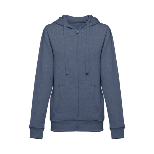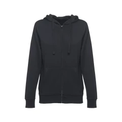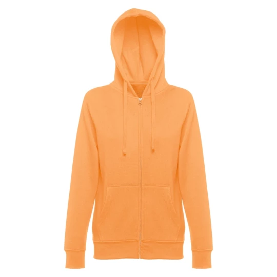 Damska bluza z kapturem zapinana na suwak. 50% bawełna i 50% poliester (320 g/m²) ze zgrzebnym wnętrzem. Kaptur jest podszyty i posiada kolorowy sznurek do ściągania. Bluza ma 2 kieszenie kangurkowe i kryty plastikowy zamek błyskawiczny. Fason ze ściągaczami przy mankietach i na dole. Rozmiary: S, M, L, XL, XXL