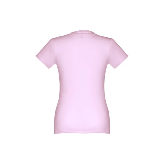 Damski t-shirt o dopasowanym kroju. 100% bawełna dżersej (190 g/m²) ze zgrzebną przędzą bawełnianą (kolor 183: 90% bawełna/10% wiskoza). Posiada cienki kołnierzyk z dżerseju wzmocniony satynową tasiemką. Zszywany po bokach, z podwójnym ściegiem na rękawach i na dole. Rozmiary: S, M, L, XL, XXL