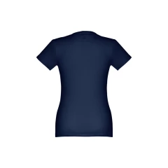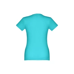 Damski t-shirt o dopasowanym kroju. 100% bawełna dżersej (190 g/m²) ze zgrzebną przędzą bawełnianą (kolor 183: 90% bawełna/10% wiskoza). Posiada cienki kołnierzyk z dżerseju wzmocniony satynową tasiemką. Zszywany po bokach, z podwójnym ściegiem na rękawach i na dole. Rozmiary: S, M, L, XL, XXL